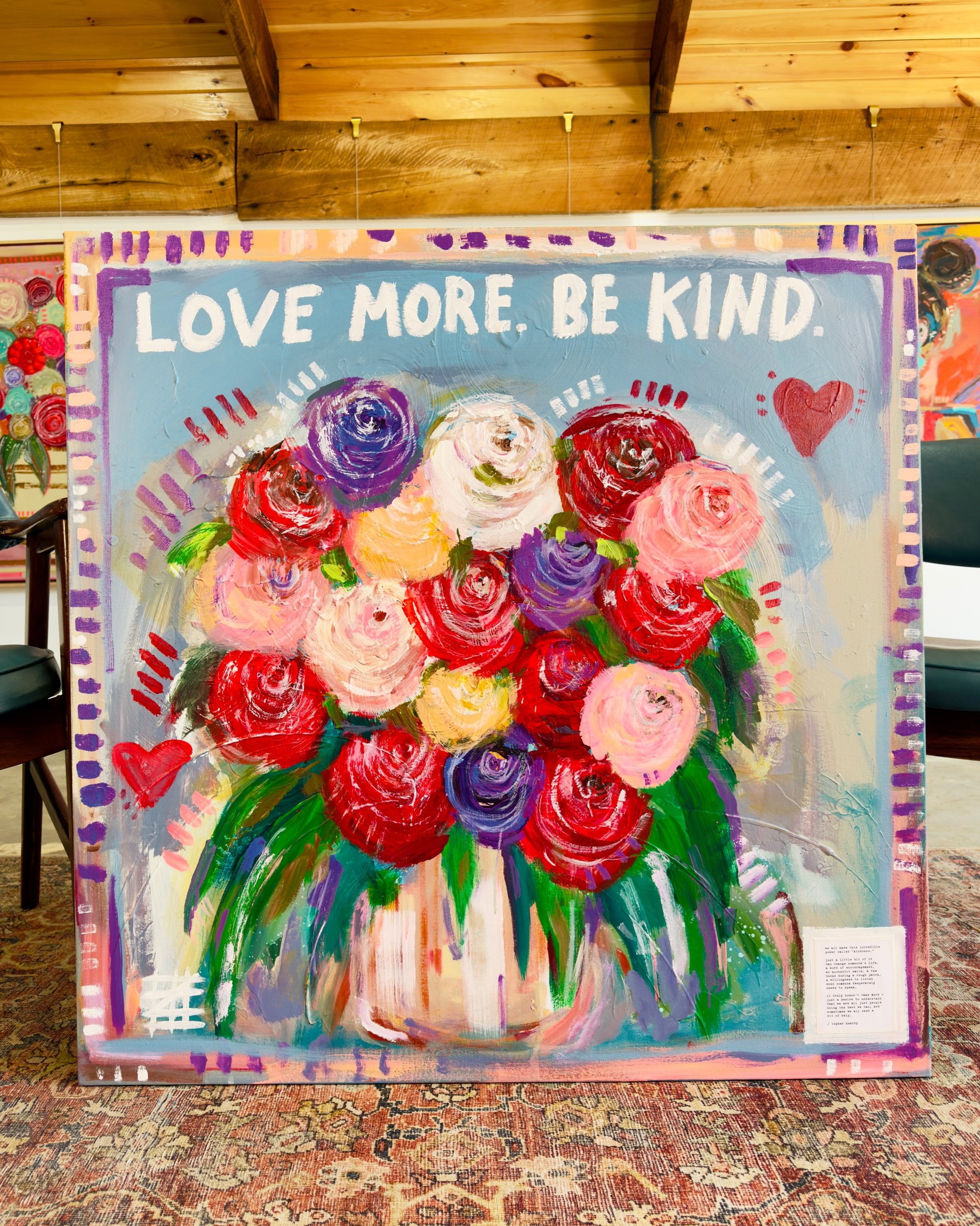 Love More. Be Kind. – Forever Blooms | 36” x 36” Original Painting by Topher Kearby