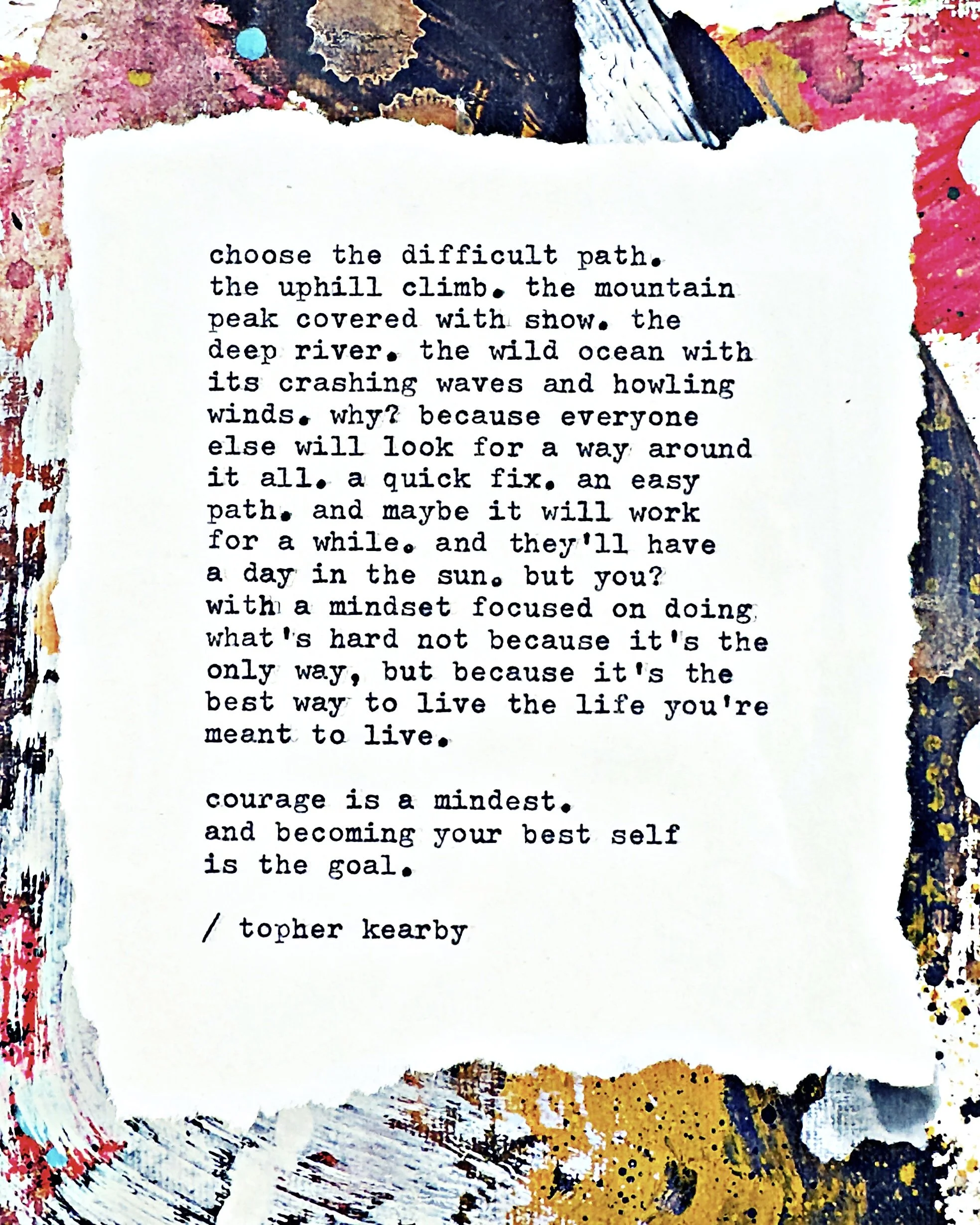 Poem: “The Difficult Path,” hand-typed original by Topher Kearby