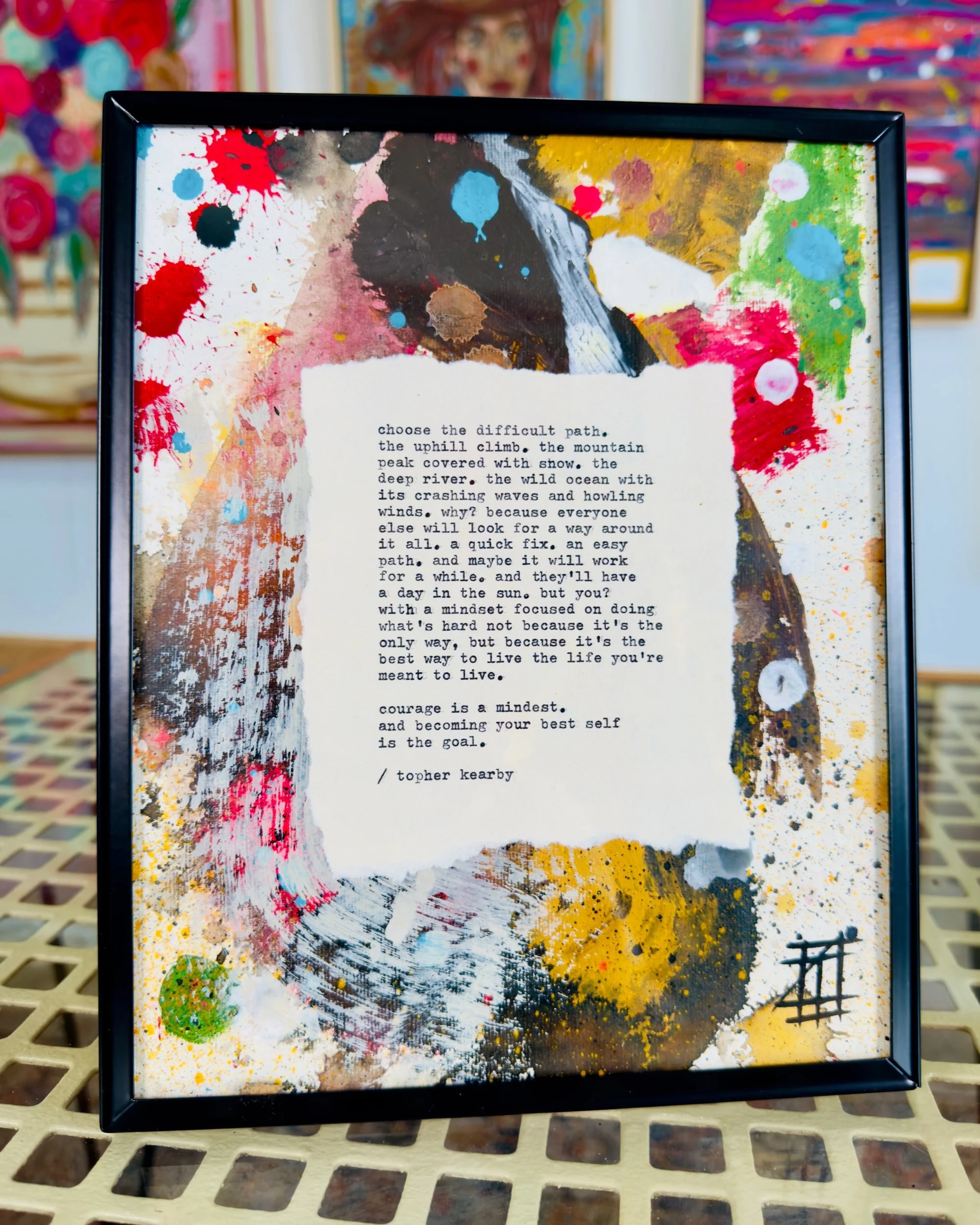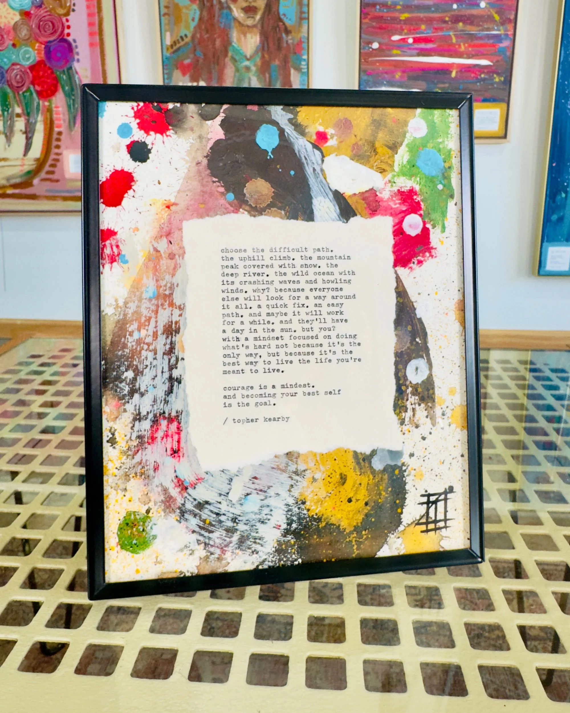 The Difficult Path is an original framed work that merges poetry and painting into one timeless piece.