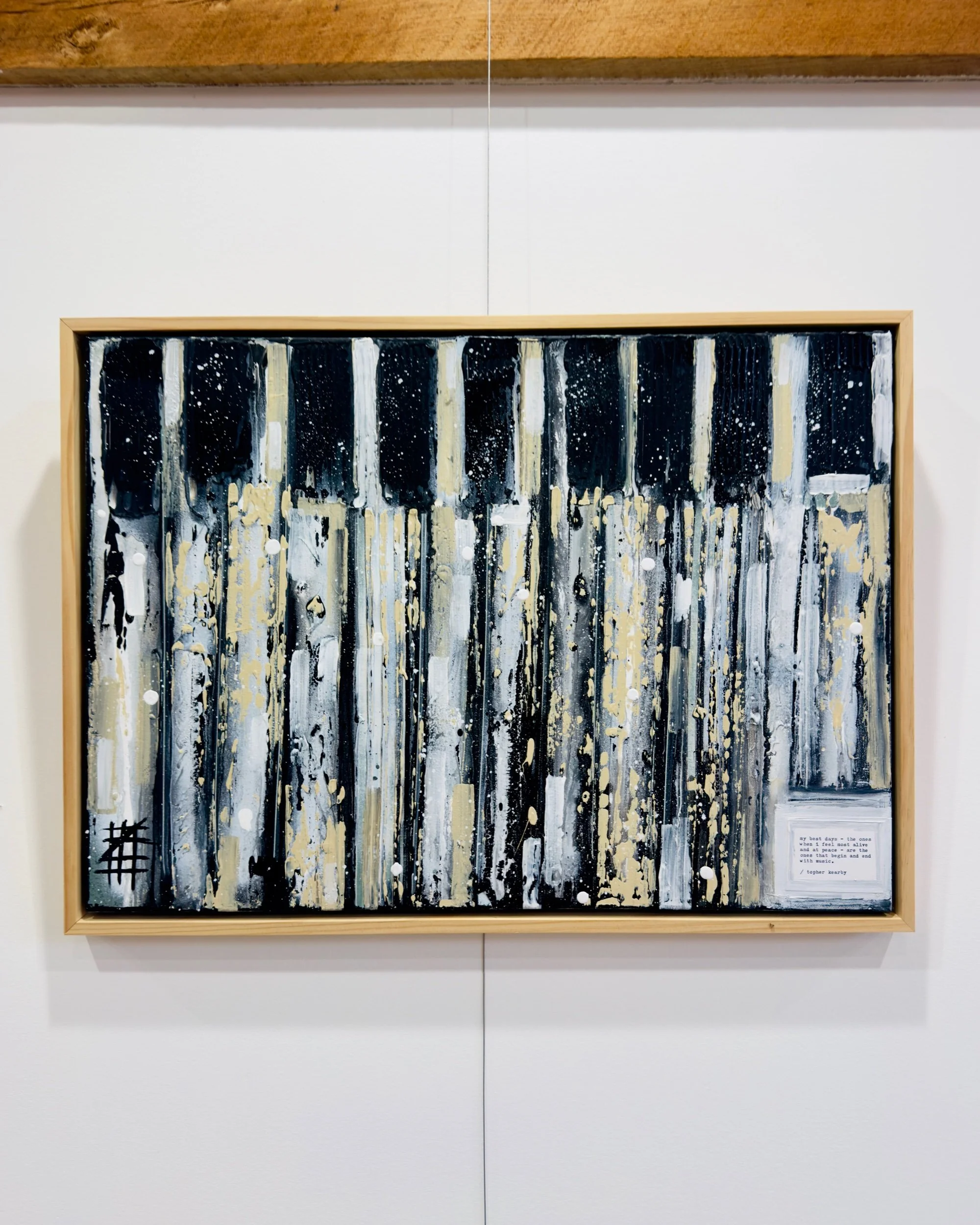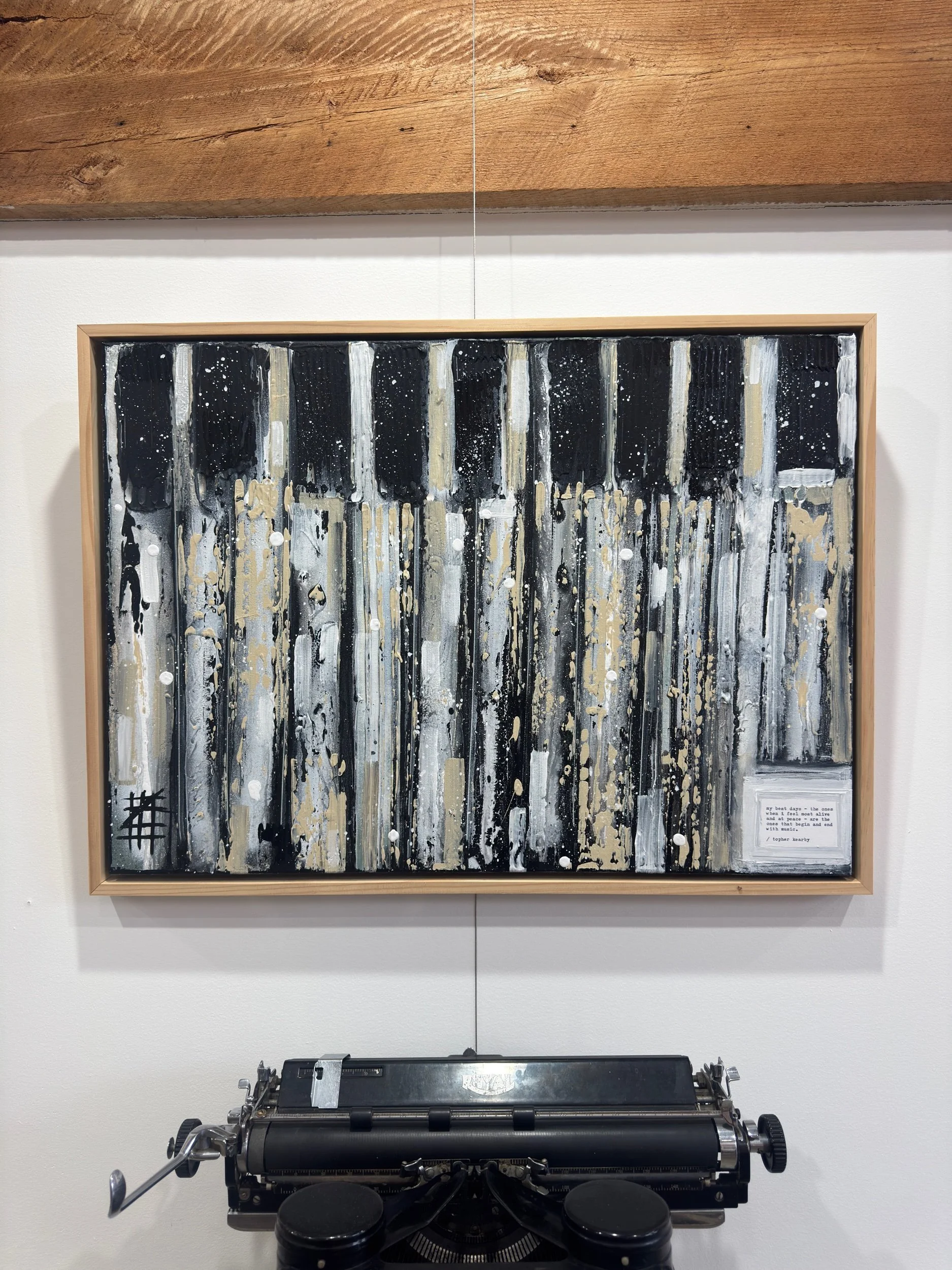 Materials: Spray paint, acrylic, mixed media, hand-typed poem, sealed finish